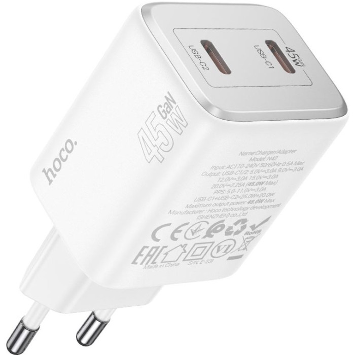 დამტენი Hoco N42 Elogiado dual-port PD45W (2C) charger white