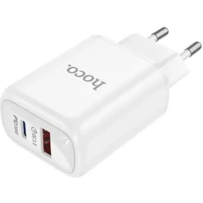 დამტენი Hoco DC107 Cool dualport PD30W+QC3.0 charger USB-Type-C, USB--A White