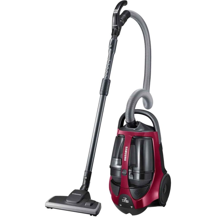 General InformationBrand Samsung Model/PN VCC4581V3K/XEV Type Vacuum Cleaner Cleaning Type Dry Vacuum Cleaner FeatureDust Bin Type Plastic Container Radius of Action 9.2 Vacuum Cleaner Noise Level 83 Dust container volume 1.3 ლ Automatic Cord Rewinder Yes FilterFilter Technology HEPA Bag Chamber Filter Twin Chamber PowerPower 2000 Suction Power 37..